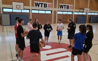Die nächsten Basketball-Junior Coaches stehen in den Startlöchern. Insgesamt 10 Schülerinnen und Schüler nahmen am Lehrgang vom 27.11. bis 28.11.2025 in Hamm-Oberwerries teil. Verbandstrainer Maximilian Steeb aus Iserlohn vermittelte Inhalte des Kinderbasketballs, die schon bald in der Schule, im Verein und bei den Grundschulmeisterschaften weitergegeben werden können. Auch der Konrektor der Edith-Stein-Realschule und Abteilungsleiter des LTV